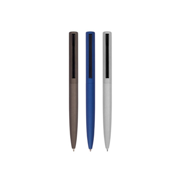 El clip que funciona como pulsador optimiza la experiencia de uso, integrando funcionalidad en un formato minimalista. Con tinta azul de escritura fluida y una superficie ideal para tampografía, es una excelente opción para kits corporativos y regalos institucionales.