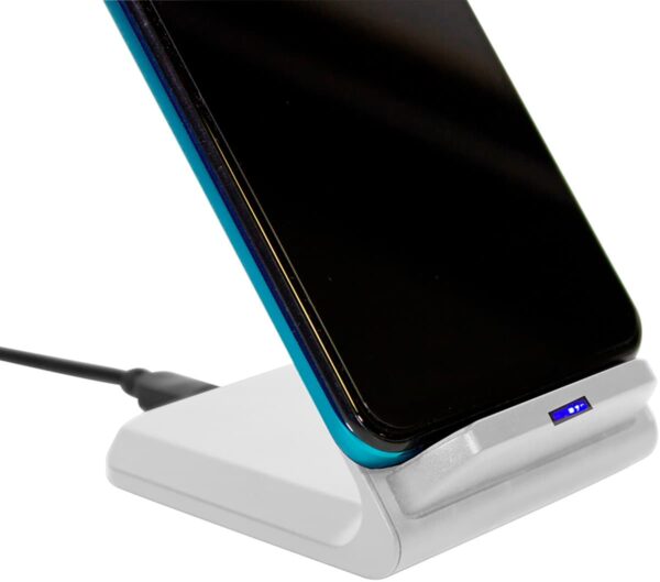 El cargador KINGWI combina diseño minimalista y funcionalidad para acompañar cualquier espacio corporativo. Fabricado en plástico ABS, ofrece una experiencia de carga rápida e inalámbrica, solo necesitas apoyar tu teléfono para comenzar el proceso. Su estructura permite cargar el dispositivo en posición horizontal o vertical, gracias a su sistema de doble batería de 10W que garantiza estabilidad y eficiencia. Incluye un cable USB de 60 cm y se presenta en caja de regalo, ideal para obsequios empresariales modernos y elegantes.