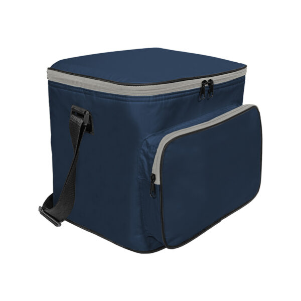 El cooler “Aruba” ofrece una capacidad de 17,5 litros y está confeccionado en poliéster 420D, un material resistente y de apariencia profesional. Su interior recubierto en aluminio asegura una óptima conservación de la temperatura. Incorpora un bolsillo exterior con cierre para pequeños objetos y una correa regulable, pensada para un transporte cómodo y versátil. Una pieza funcional y elegante para actividades al aire libre o kits empresariales.
