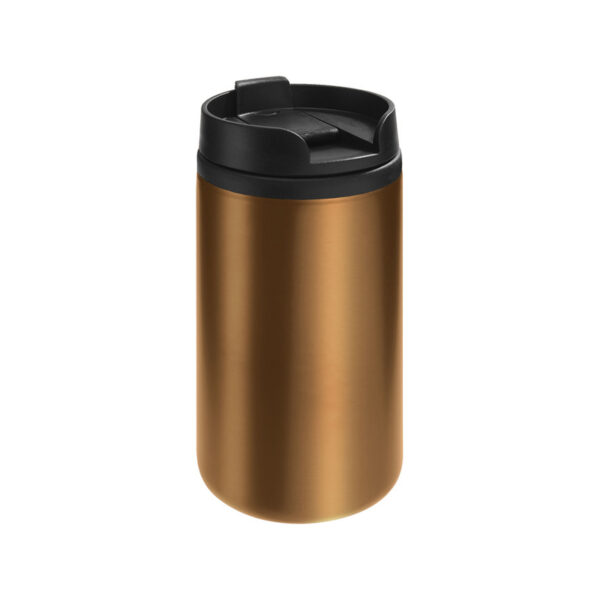 La tapa plástica a rosca con cierre a presión antiderrame te brinda seguridad en cada movimiento, mientras que la base antideslizante lo mantiene firme en cualquier superficie. Ideal para el trabajo, el auto o salidas rápidas. Se presenta en caja de regalo.